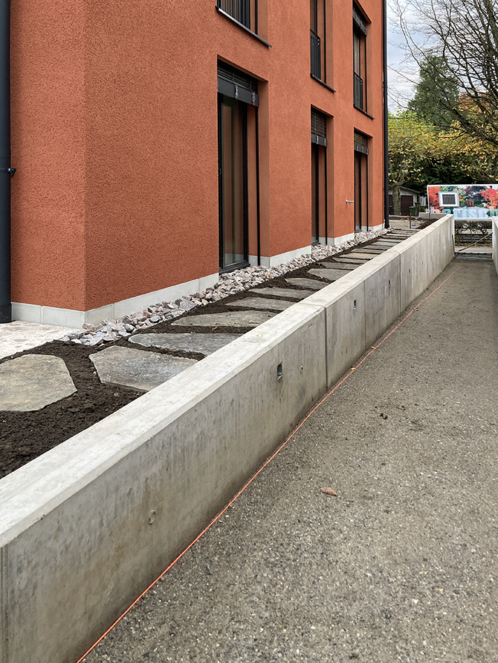 News / 07.11.2025 Baufortschritt: "Bruderholzrain 239", Basel Die Aussenanlagen werden angelegt, Bäume geplanzt und Wege gepflastert.