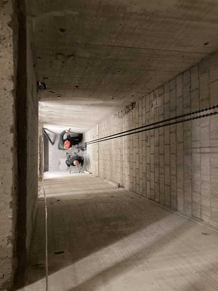 News / 29.10.2025 Baufortschritt: "Freie Strasse", Basel Die Liftanlage wird geliefert und mit der Liftmontage begonnen.