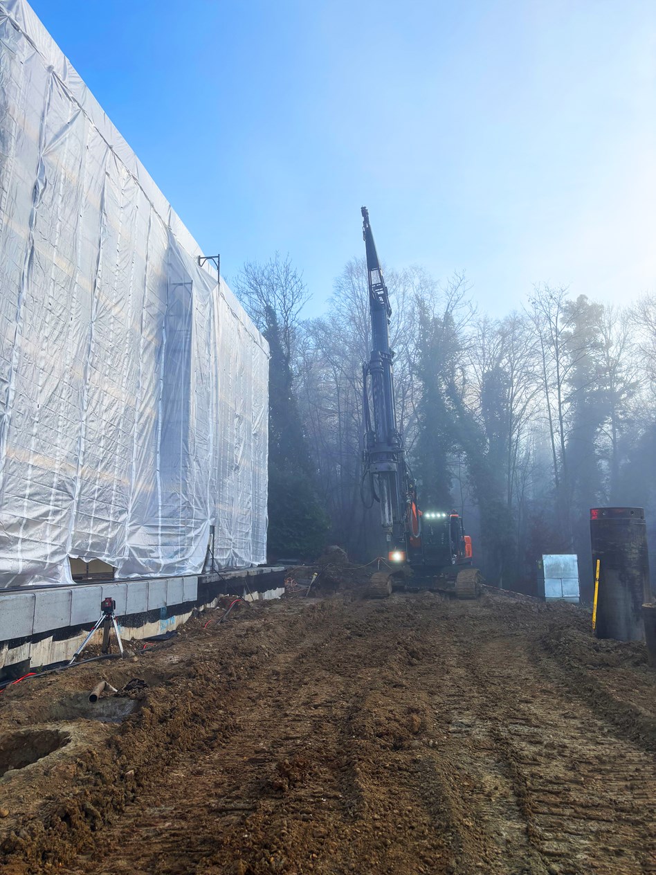 News / 12.12.2025 Baufortschritt: "Kirschtalrain 4", Binningen Die Arbeiten an der Bohrpfahlwand werden planmässig fortgesetzt.