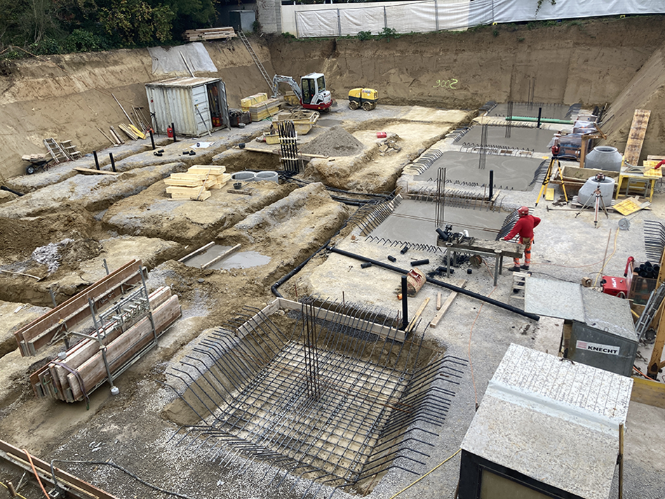News / 10.10.2025 Baufortschritt: "Niklaus von Flüe-Strasse", Basel Die Einzelfundamente für die Stützen werden betoniert.