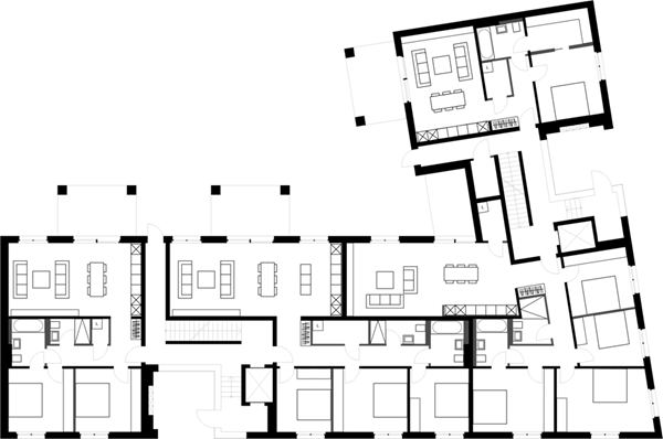 Durch die reduzierte Tragstruktur wurden innerhalb der Zonierung des Gebäudes und unter Beibehaltung der Fassadengestaltung individuelle Anpassungen der Grundrisseinteilung ermöglicht.